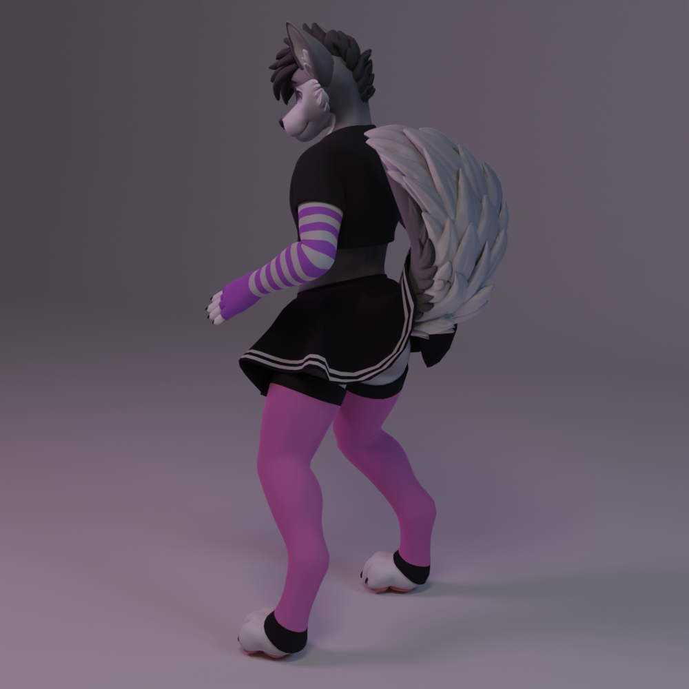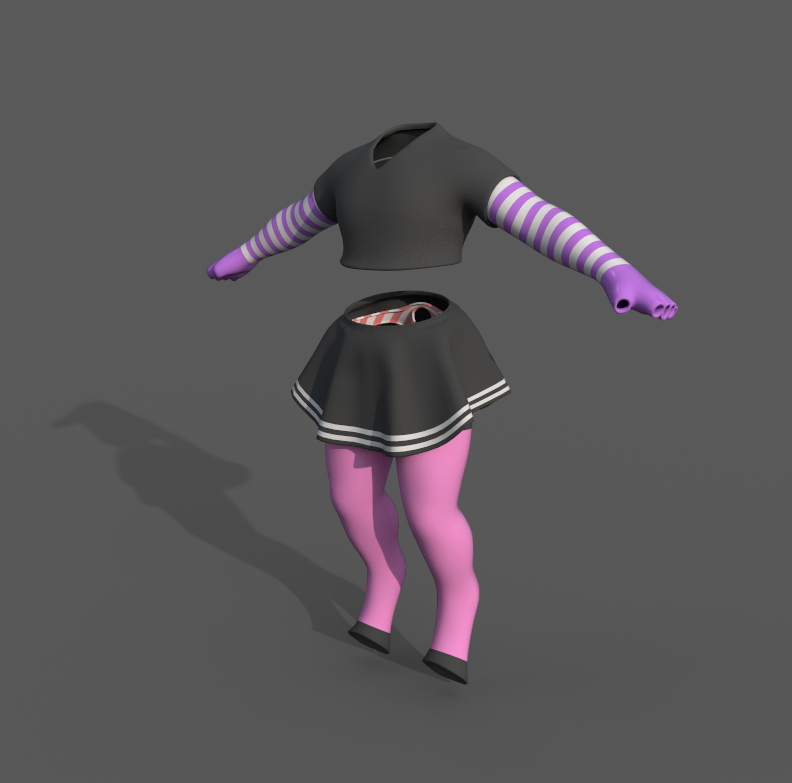 - FBX Files including; Skirt, Panties, Crop top, short sleeved hoodie, Arm warmers and Leg warmers.