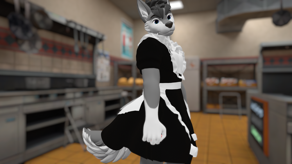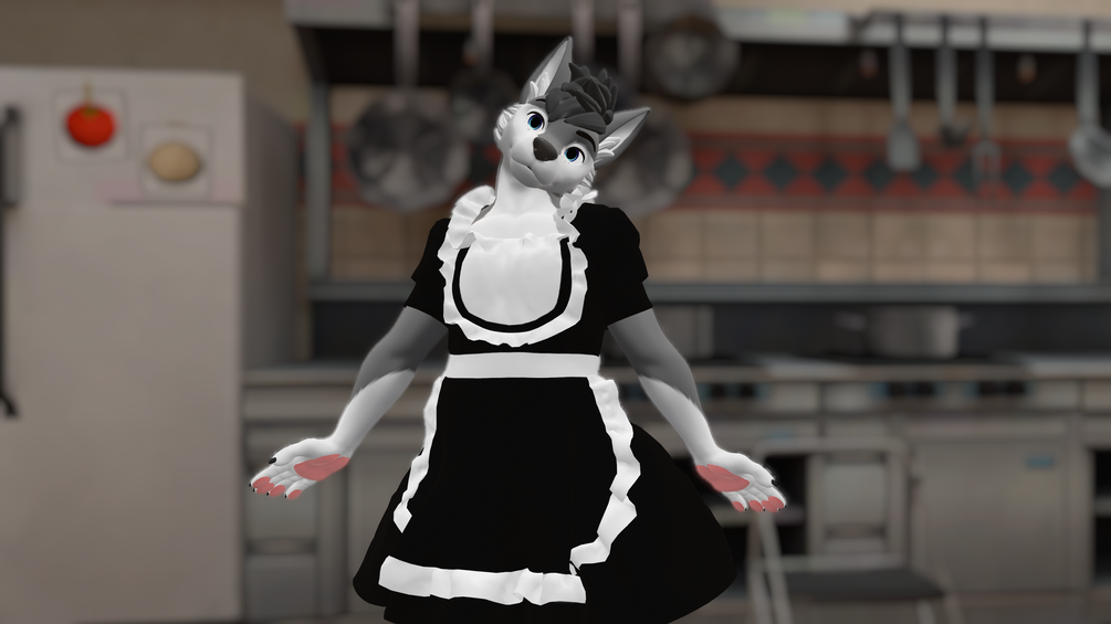 The Maid dress for the male canine, comes pre-setup with a substance file and dynamic skirt. 17k polycount to fit onto the model and only takes up 1 material slot, It comes with all blendshapes like buff, feminine and thin to fit any customized model.